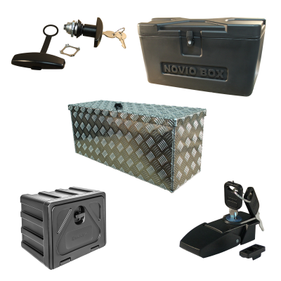 Voor het opbergen van uw materialen kunnen gereedschapskisten en kunststof disselboxen uitkomst bieden. De oplossing om bijvoorbeeld uw spanbanden, gereedschap of aanhangernet bij de hand te houden. Gereedschapskisten leveren wij in zowel aluminium als kunststof. De bekende NOVIO is dé disselbak.
