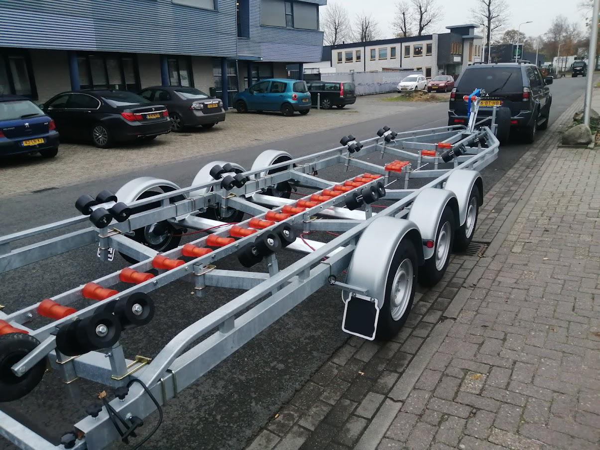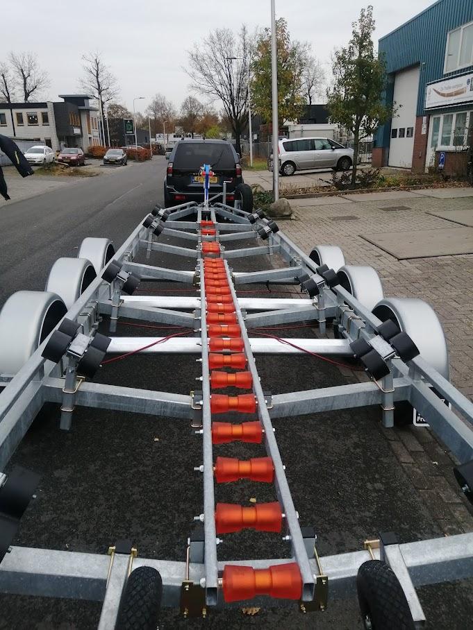 Een prachtige maatwerk boottrailer hebben wij ontwikkeld voor een klant van ons, zodat het transport van de boot zonder problemen verlopen kan.